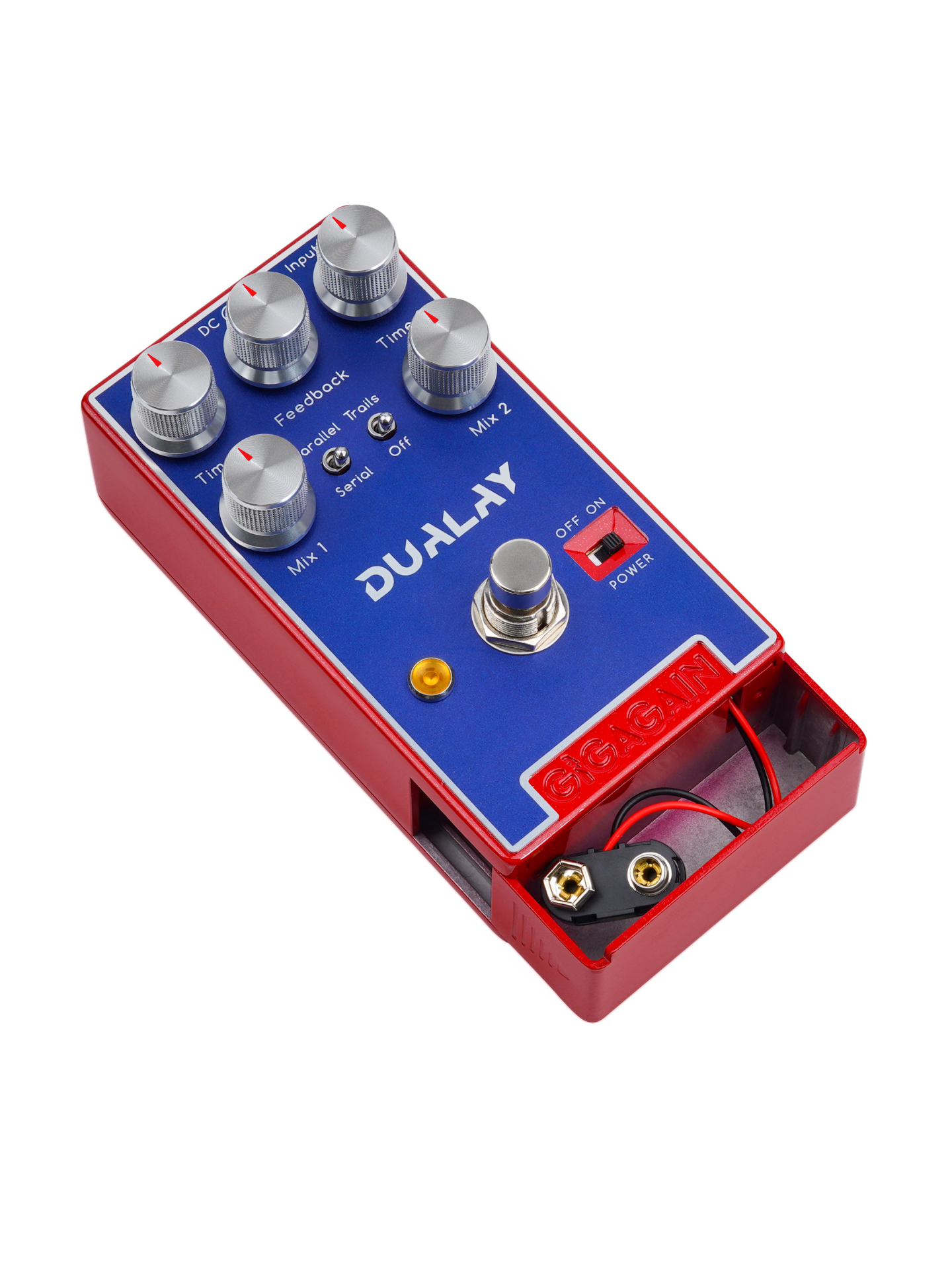 Dualay is a dual-delay spatial pedal, unlike conventional delay pedals, Dualay has two separate delay module, which allows you choose either parallel connection or series connection, PARALLEL / SERIAL toggle switch design avoids complicated wiring using two separate delay pedals. You can control TIME 1 and TIME 2 value separately. TIME 1 or TIME 2 set in different value, you will get magnificent reverb echo tone under SERIAL; while you will get rich spacious tone under PARALLEL. Dualay will bring you a brand-new delay padel experience.